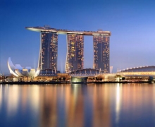 Самый дорогой отель в мире Marina Bay Sands. Представьте себе, что на трех башнях высотой в 200 метров (55 этажей) располагается огромная терраса в виде гондолы с наклонными стенами - 26 градусов, бассейнами и зелеными садами общей площадью 12,4 тыс. м². Главный бассейн, расположенный под открытым небом, не имеет видимых бортиков, из за чего создается впечатление, что кромка воды обрывается на высоте (так называемый infinity-pool). Кажется, что у него словно нет края, и вода переливается, стекает вниз. Отличительной особенностью бассейна является то, что он расположен на беспрецедентно огромной высоте, его длина при этом равняется 150 метрам и с него открывается потрясающий вид на Сингапур. Крыша "гондолы" настолько велика, что на ней могут поместиться, например, четыре огромных аэробуса А380 или три футбольных поля. В длину “гондола" больше Эйфелевой башни. На палубе разбит тропический сад с сотнями деревьев и иных растений. С кораблем отель сравнивают еще и потому, что у подножия трех башен построены здания в виде волн.
